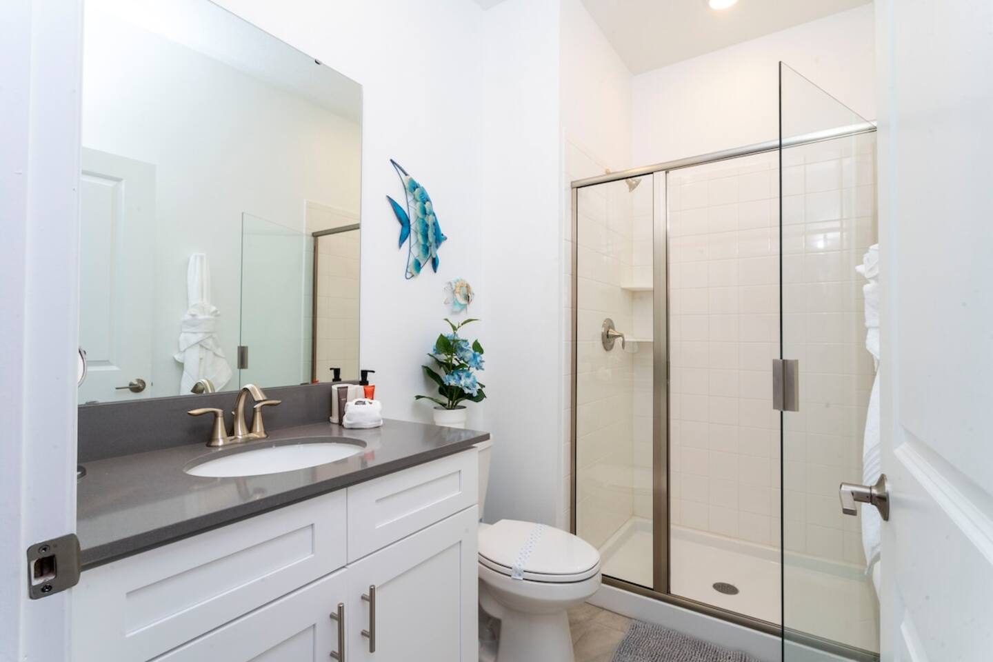 Experience ultimate comfort and convenience in our townhome's 4 bedrooms, 3 bathrooms, and private pool. The 1st floor features a King size bed in Bedroom 1 with a Smart TV, a full bath in the hall, and the 2nd floor offers a King size bed in the master bedroom with a private bathroom and walking closet, as well as one full size bed and a twin size bed with Smart TVs in Bedrooms 3 and 4. Enjoy a full bathroom, laundry room with washer and dryer, and patio furniture in the screened-in pool area.